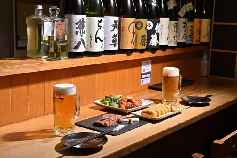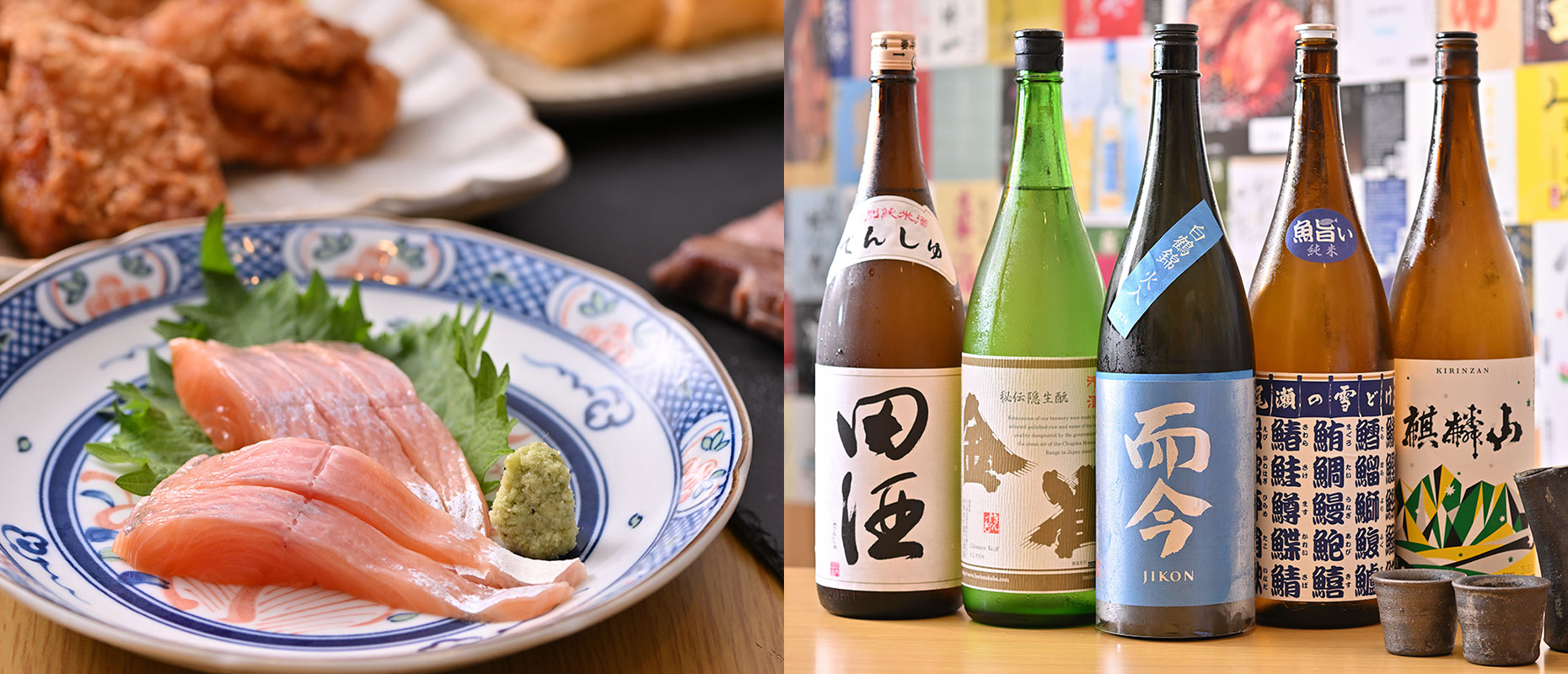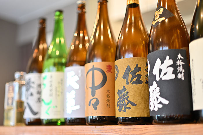 全国各地から選りすぐった日本酒や焼酎を取り揃え、定番の銘柄に加えて、春には「春酒」、秋には「ひやおろし」など季節限定の一本もご用意しています。